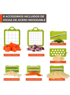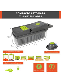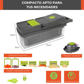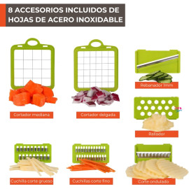 Una herramienta versátil diseñada para simplificar la preparación de alimentos y elevar tus habilidades culinarias. Con sus múltiples funciones en un solo dispositivo, este cortador picador rallador mandolina se convierte en un aliado indispensable en tu cocina.