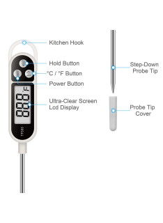 ¡Prepara platos perfectos con precisión científica usando nuestro termómetro digital! Olvídate de las conjeturas y deja que la tecnología te guíe. Este termómetro te ofrece lecturas rápidas y precisas para asegurarte de que tus comidas estén siempre en su punto. Ya sea para carne jugosa, dulces delicados o platos al horno, este termómetro es tu aliado infalible en la cocina. ¡Haz de cada comida una experiencia culinaria perfecta con nuestro Termómetro Digital para Cocina y Alimentos!