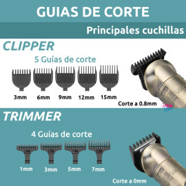 Olvídate de tener el baño lleno de aparatos diferentes. La VGR V-109 es un kit de grooming completo con un diseño de lujo en metal grabado estilo vintage. Ya sea que necesites cortarte el cabello, arreglarte la barba, eliminar vello de la nariz o perfilar tus cejas, esta máquina lo hace todo con precisión profesional.