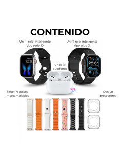 Kit i60 Suit Extreme 2x1. Incluye 2 Smartwatches, audífonos inalámbricos y 7 correas intercambiables. El combo tecnológico 12 en 1 más completo para iOS y Android.
