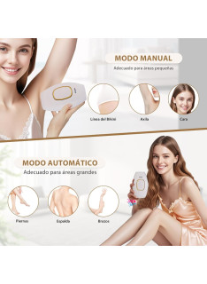 Olvídate del vello no deseado y disfruta de una piel suave por más tiempo. Con un diseño ergonómico y tecnología avanzada, ofrece un sistema de depilación permanente IPL seguro y eficaz para usar en la comodidad de tu hogar. Ideal para tratar zonas como piernas, axilas, línea del bikini y rostro sin dolor ni irritación.