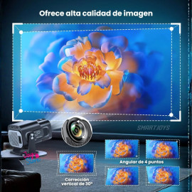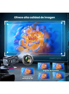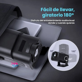 Lleva el cine y la diversión a cualquier rincón de tu hogar. Con un diseño compacto y base ajustable, este proyector inteligente combina lo mejor del entretenimiento visual y el mundo del gaming. Ideal para noches de películas, maratones de series en streaming o para disfrutar de videojuegos con amigos gracias a sus controles incluidos y su alta resolución.