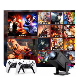 ¡Cine y Arcade en casa! Proyector Smart con emuladores retro y 2 mandos incluidos. Calidad 1080p, soporte 4K, WiFi y Android. La mejor diversión en pantalla gigante."