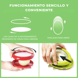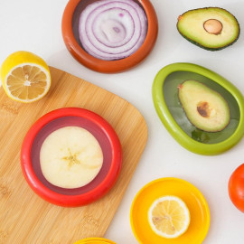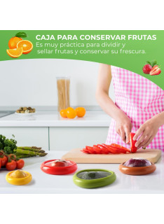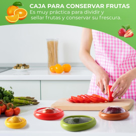 Evita que tus frutas se oxiden. Contenedores ecológicos para nevera con tapa ajustable. Guarda tu medio aguacate, limón, cebolla y tomate. Frescura total, higiene y cero desperdicio.